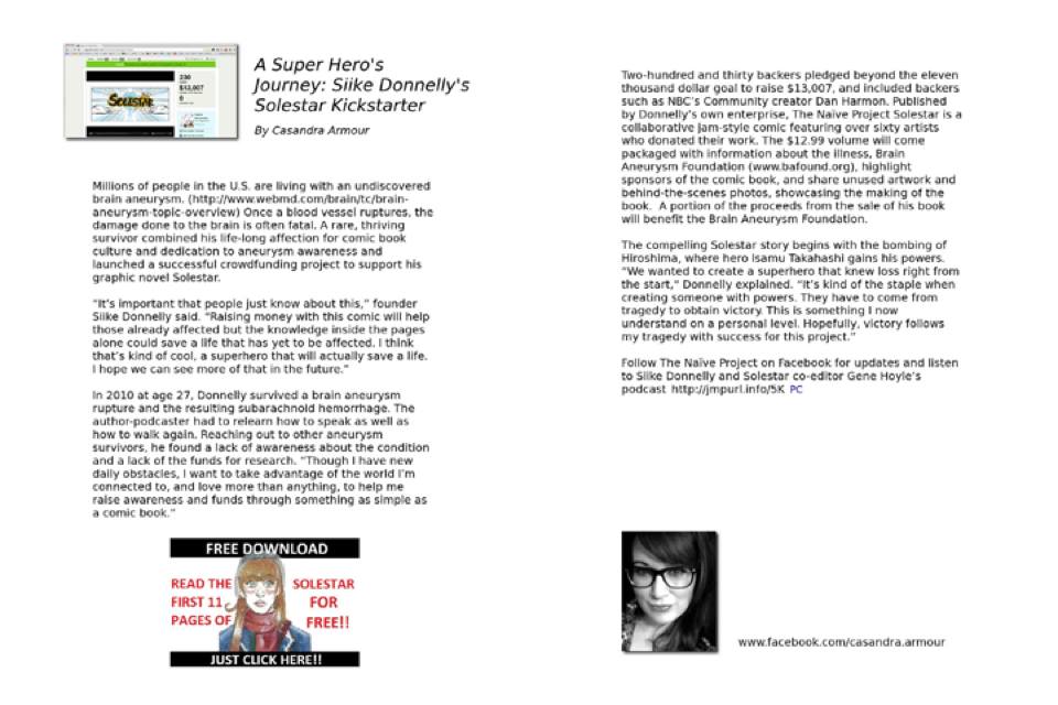 For April’s crowdfunding edition of Purple Curve magazine, put together by Purple Curve Effect co-author Jeff “Ski Kinsey, I introduced a KickStarter helmed by our enterprising friend Siike Donnelly.  — Casandra Armour