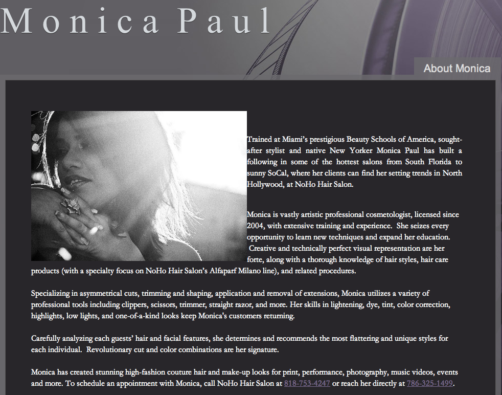 Monica Paul Bio by Casandra Armour Published at 982 × 772 in Digital Media « Previous Next » Bio written for professional make-up artist and stylist Monica Paul. Bio written for make-up artist and stylist Monica Paul. Like Loading...