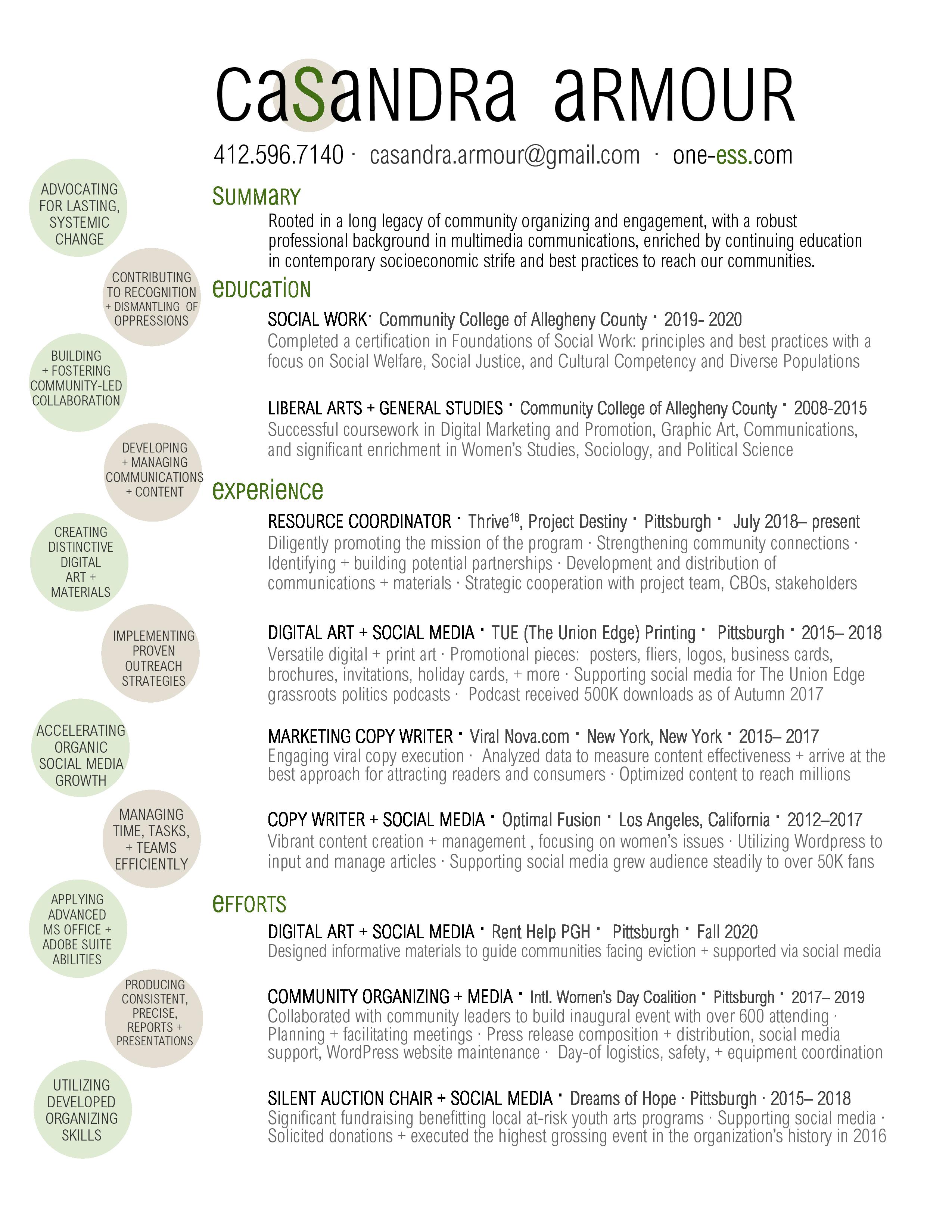 • Resume + Recommendations